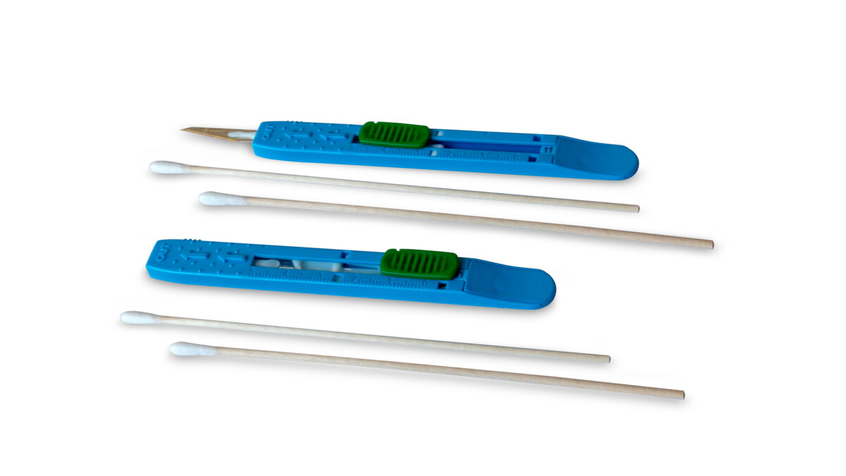 Bâtonnet d’écouvillon et scalpel de sécurité