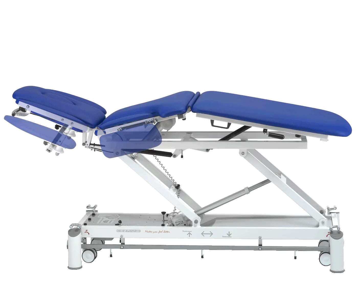 Table de soins électrique pour l’ostéopathie à sept segments avec une hauteur variable et une fonction de cyphose assistée. Élévation rapide en 43 secondes.