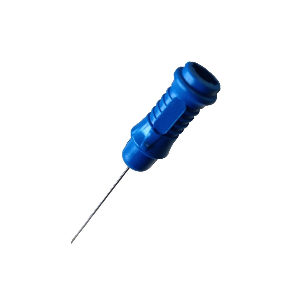 Le connecteur est doté d’un marqueur permettant au médecin d’orienter la pointe de l’aiguille. Son code couleur facilite la reconnaissance des tailles d’aiguille.
